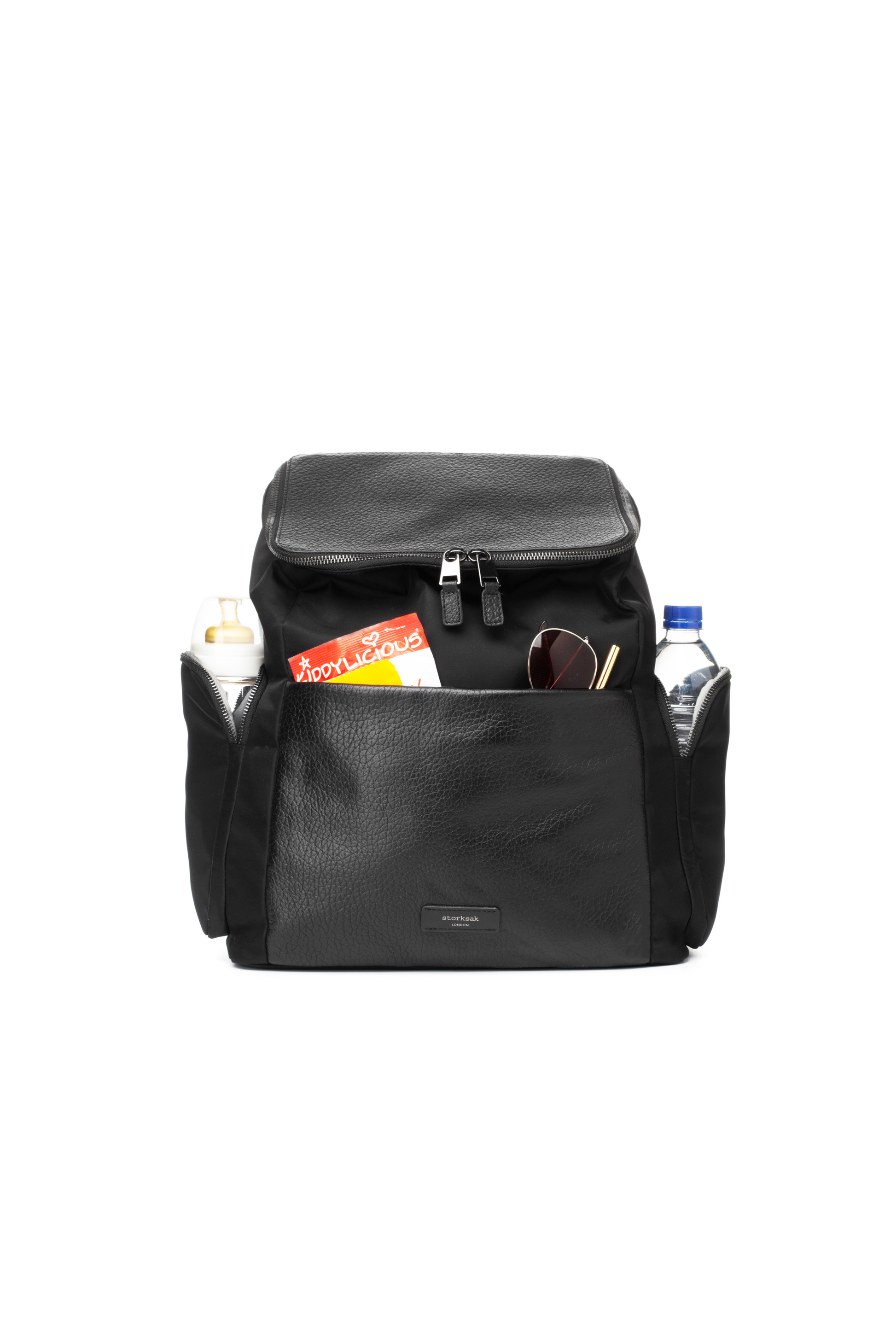 - Nine pockets: nappies, wipes + storage